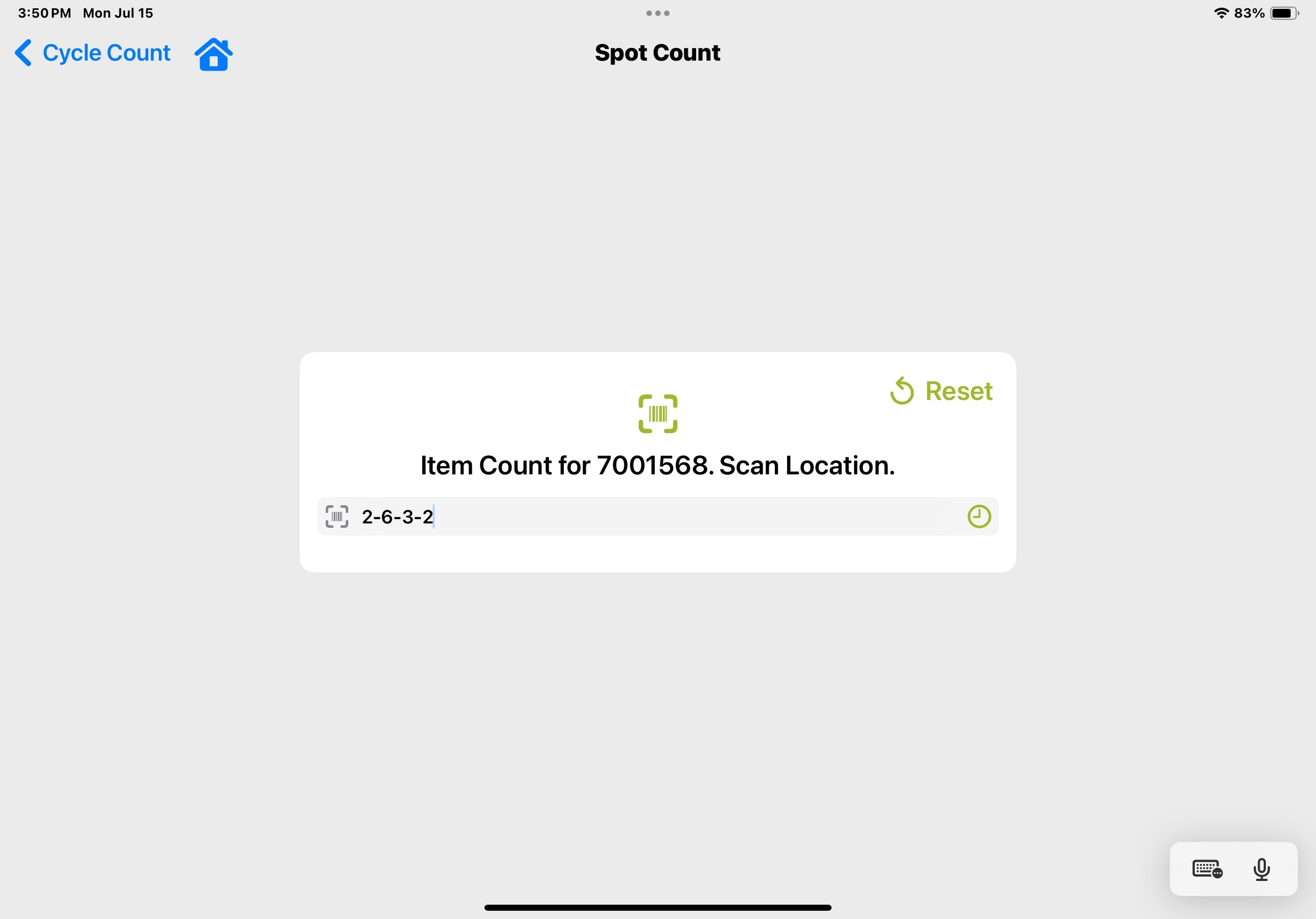 - Then the User is ready to scan the next Location or Item to Spot Count