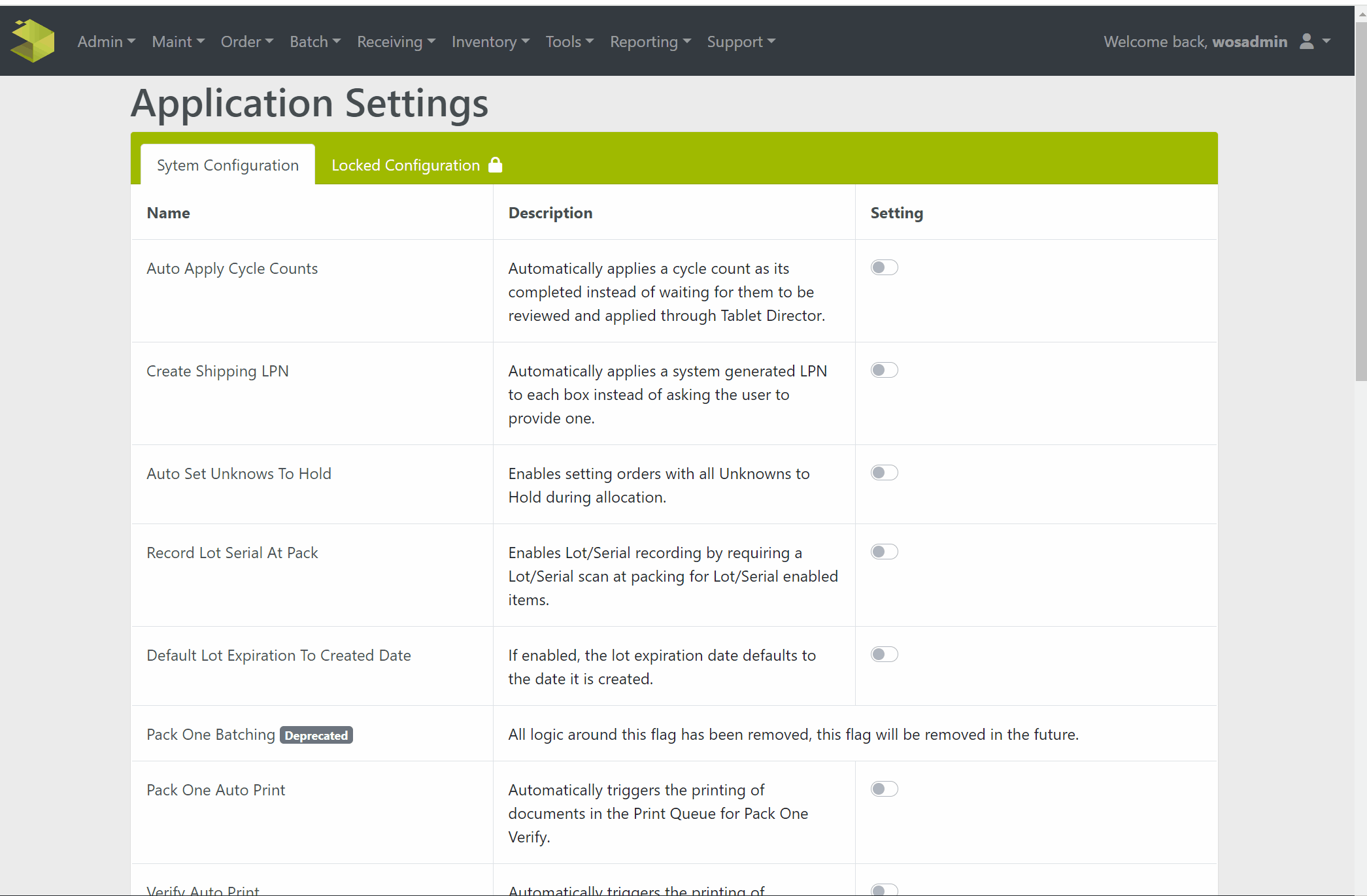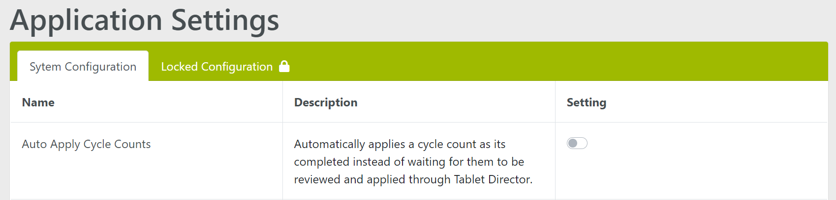 WOS Manager Cycle Count settings provide flexibility in how the Cycle Count Process is to be managed. The most important setting is Auto Apply Cycle Counts.