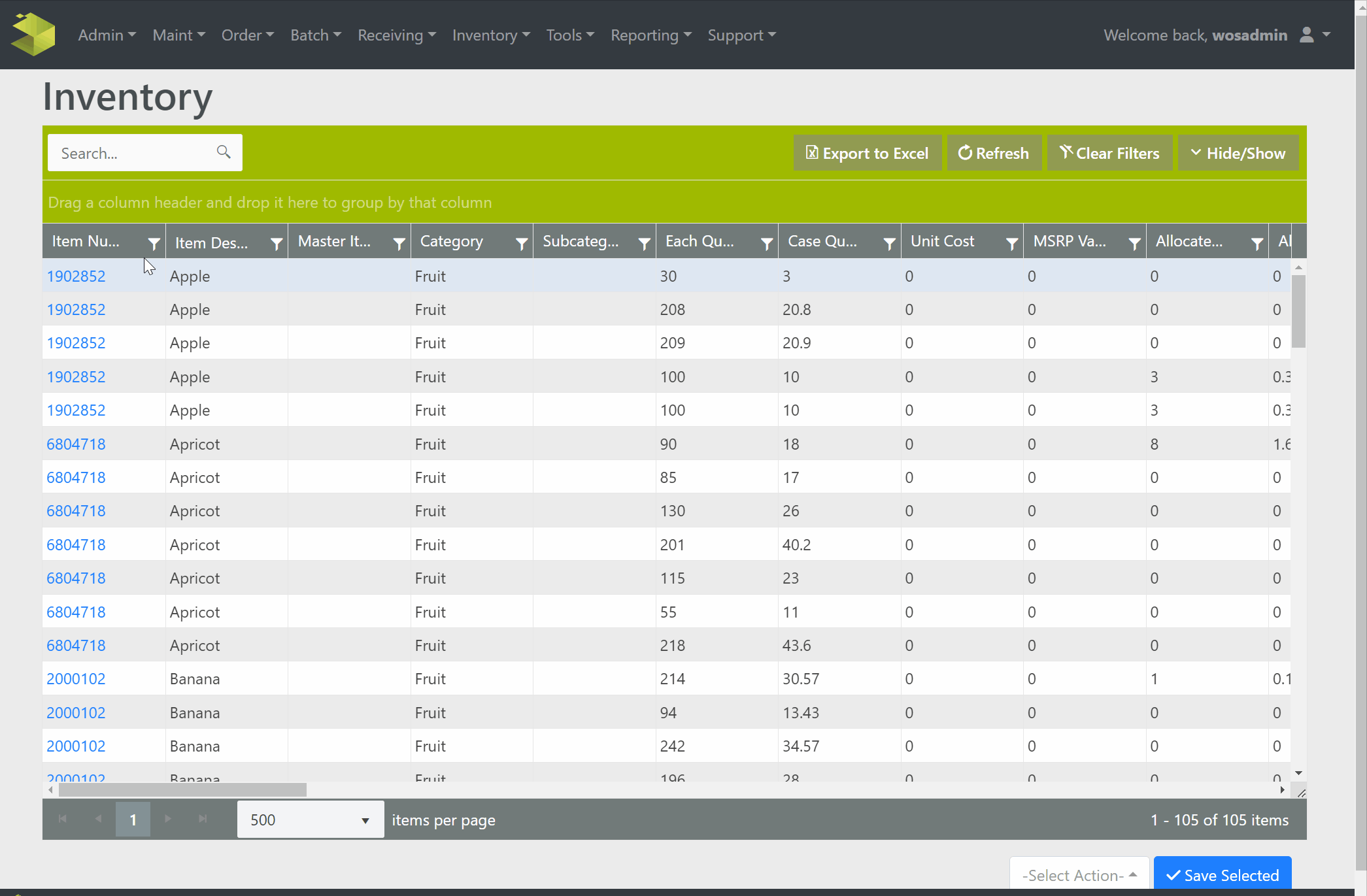 Warning: Users must be sure nor to double count a SKU.