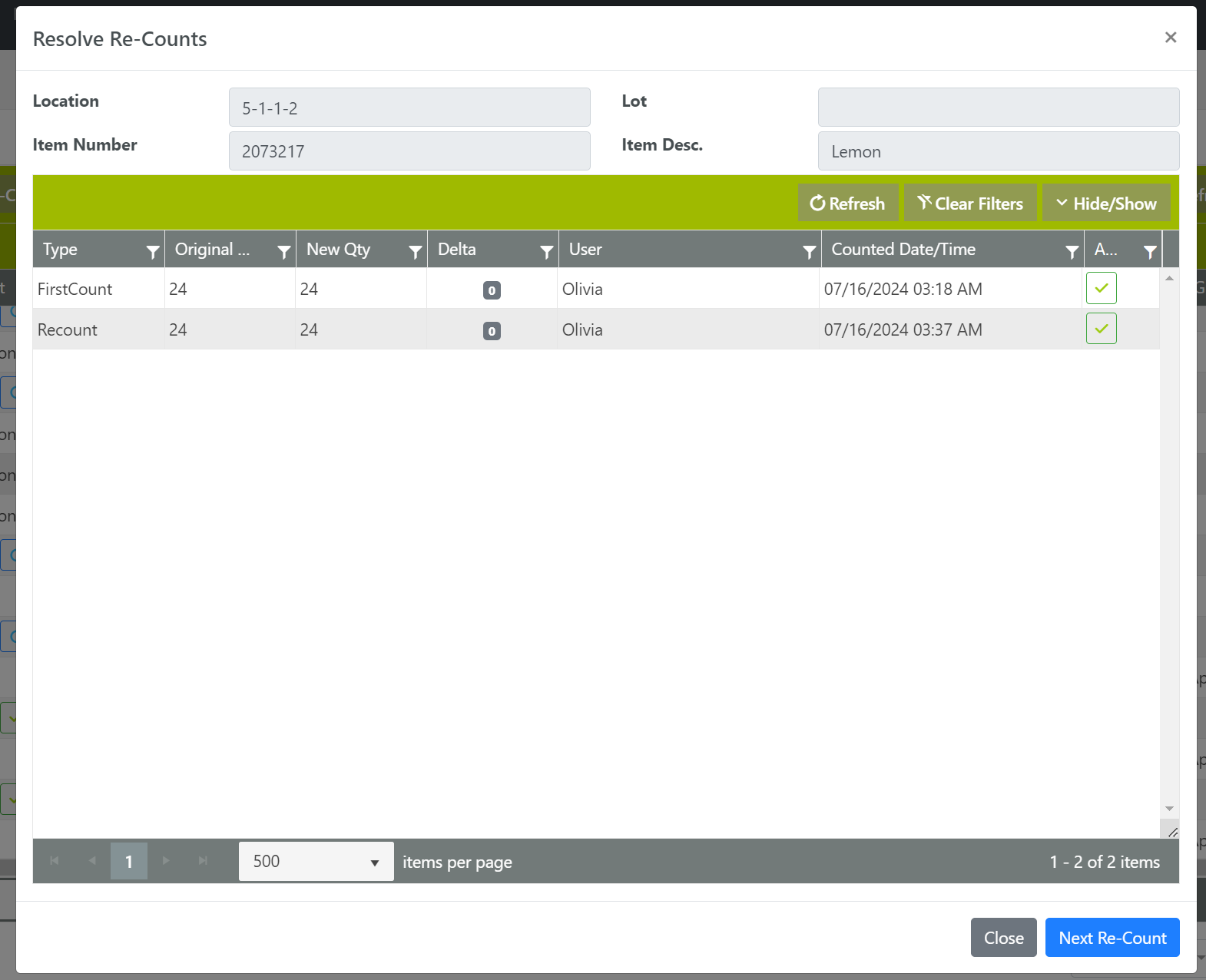 To resolve all recounts, click Resolve Re-Counts.