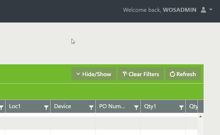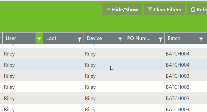 Ability to clear individual filters or click <Clear Filters> button to clear all filters.