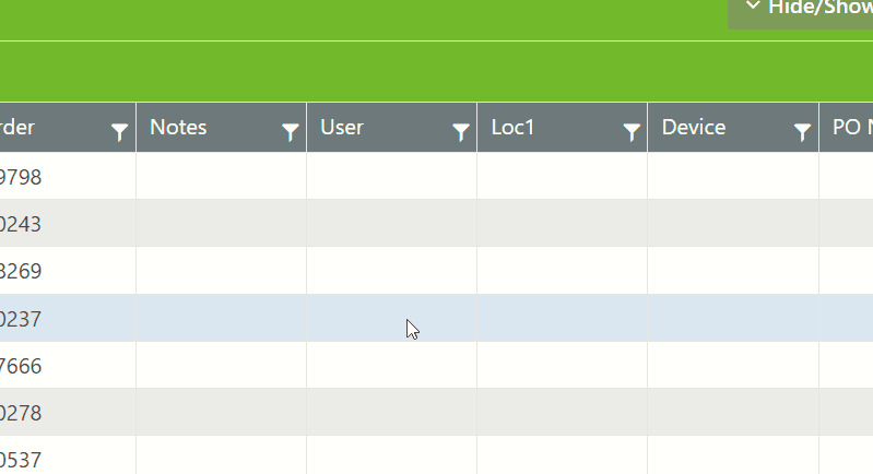 For ease of viewing, Columns may be rearranged,