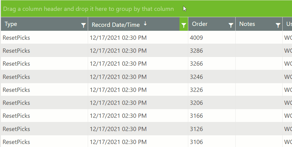 Any column header may be dragged into the Grouping, resulting in the data being grouped.
