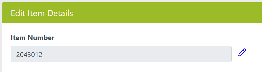 - The Item Number can be edited, but it's a special kind of edit because of its unique nature. In the Edit Item Details section, click on the pencil icon to make this edit.