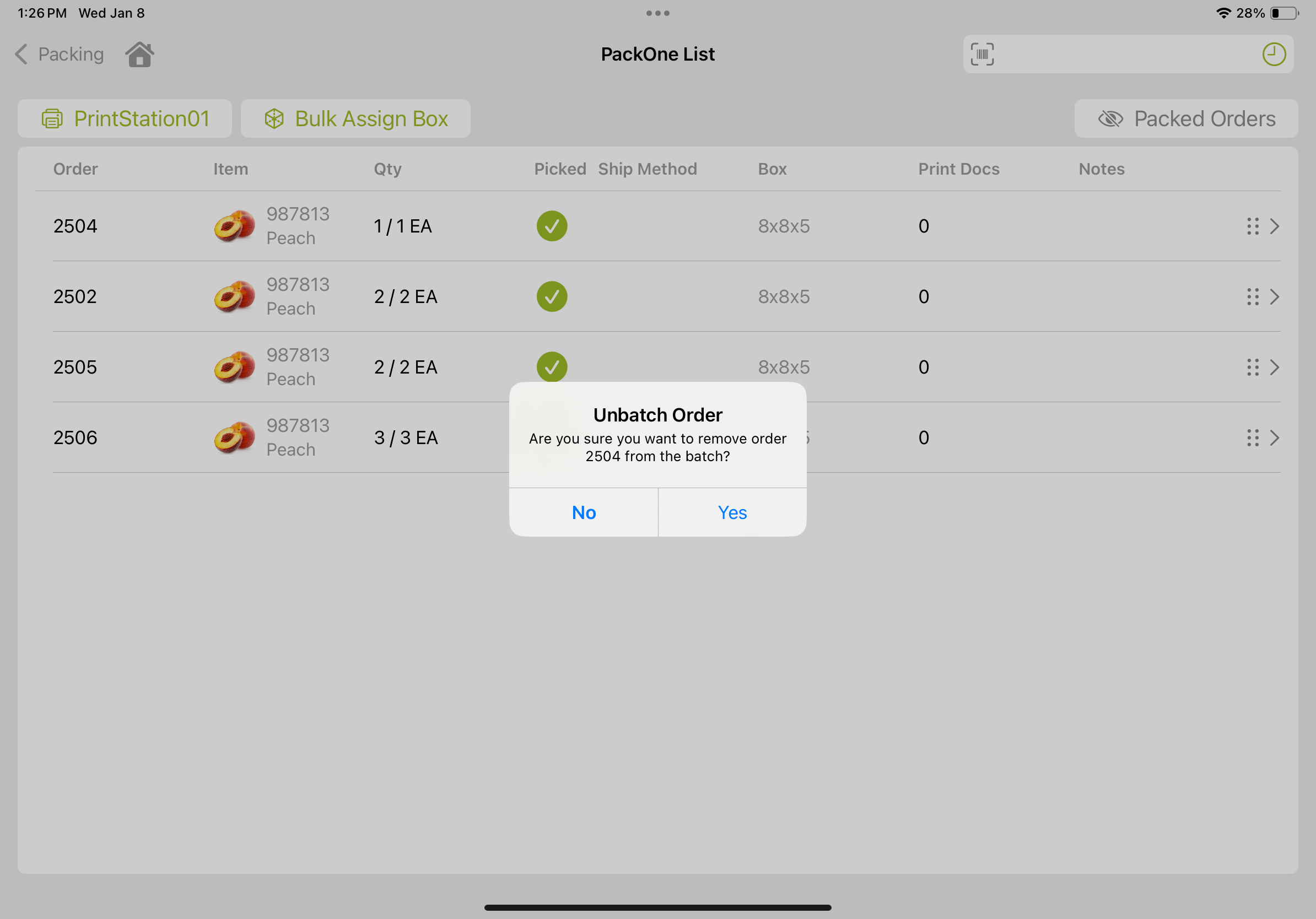 - Allow Tap Selection - User can pack an order by tapping on the item